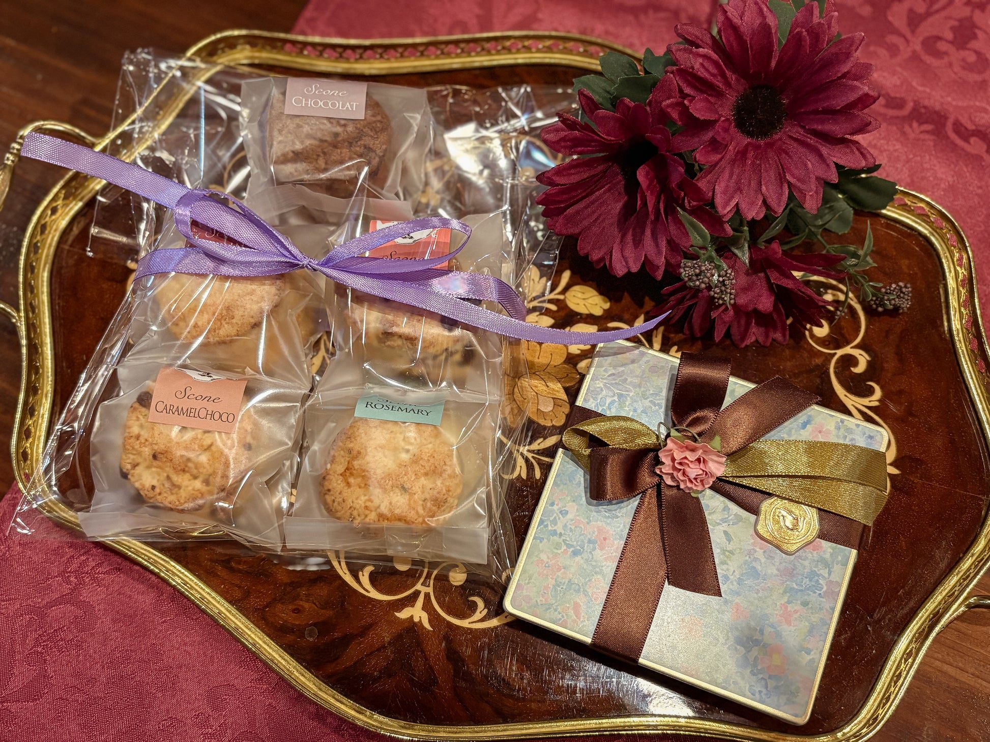 テヴリルのオリジナルスコーンと、メイド特製クッキー缶のセット
